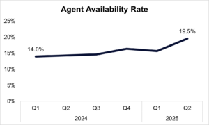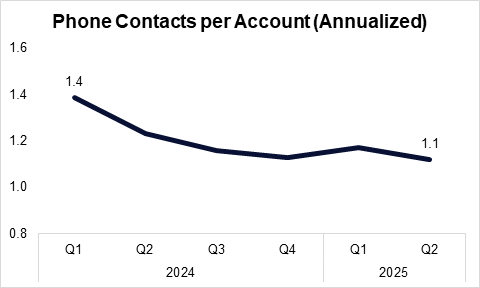 As call volumes ease, agent availability has improved, increasing 39% between Q1 of 2024 and Q2 of 2025. The increase reflects a more balanced operating environment, in which capacity is no longer consumed by low-level inquiries and where staffing levels can be aligned more thoughtfully with client demand. Agents are spending less time managing queues and more time preparing for meaningful interactions, reviewing client histories, and resolving issues that require judgment rather than scripted responses.