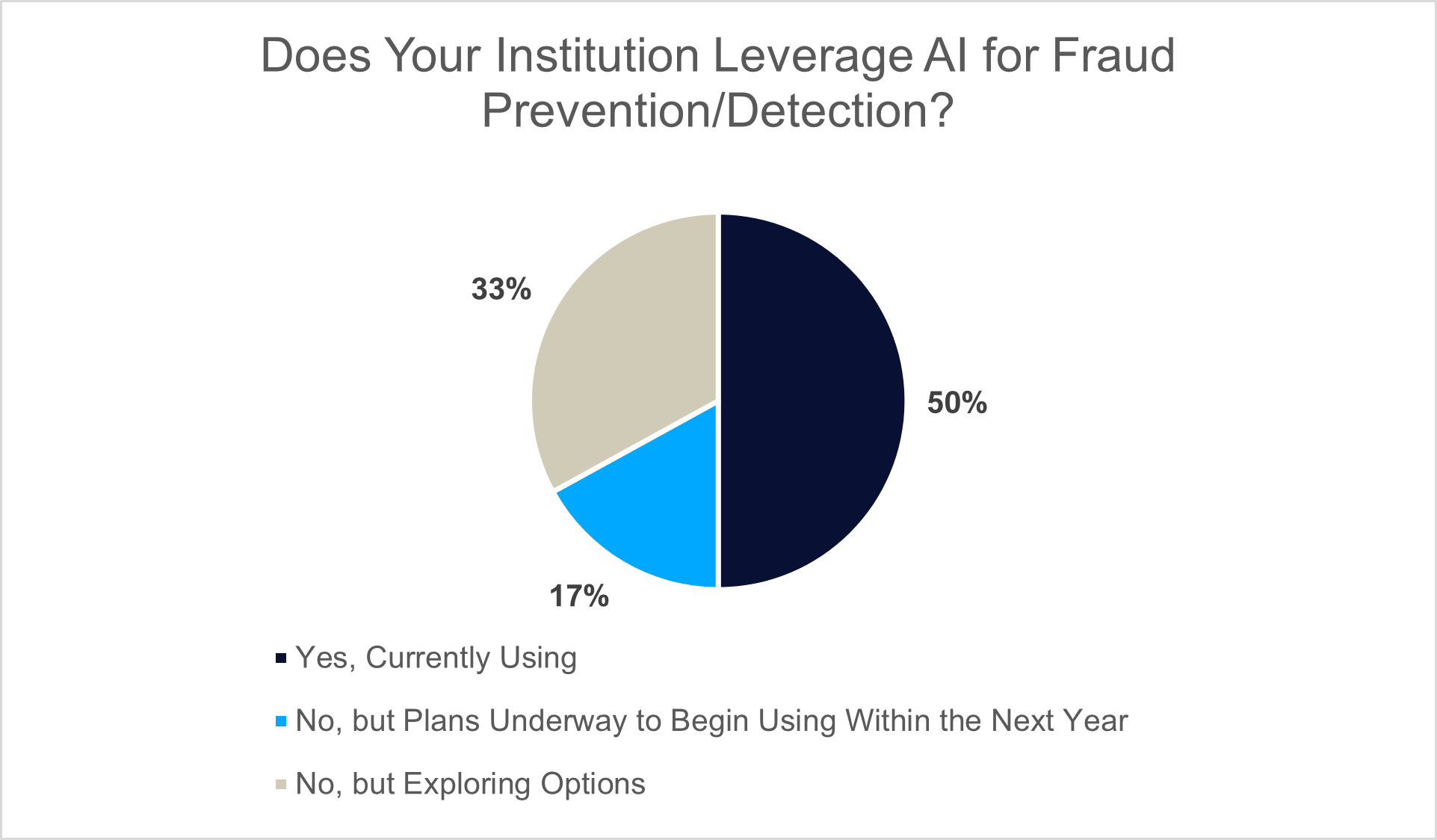 Most banks now view artificial intelligence as central to the fight against commercial fraud. Auriemma Roundtables’ industry surveys show the majority (50%) of commercial institutions already deploy or plan to deploy AI-driven tools to detect anomalies in payments, flag suspicious behaviors, and authenticate client interactions in real time.